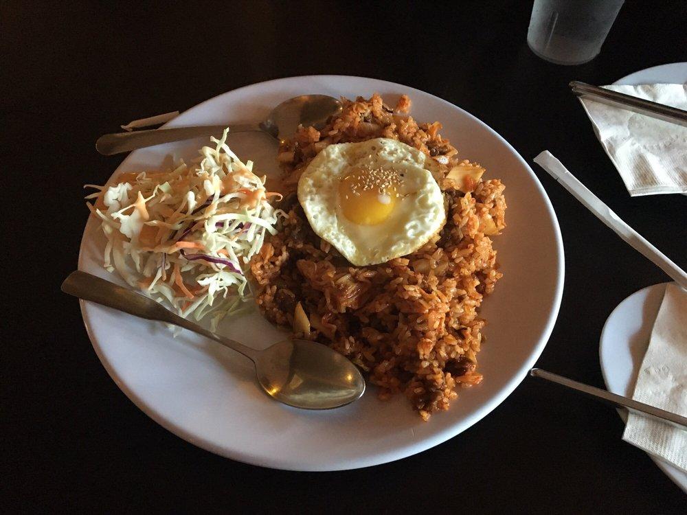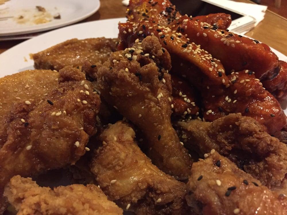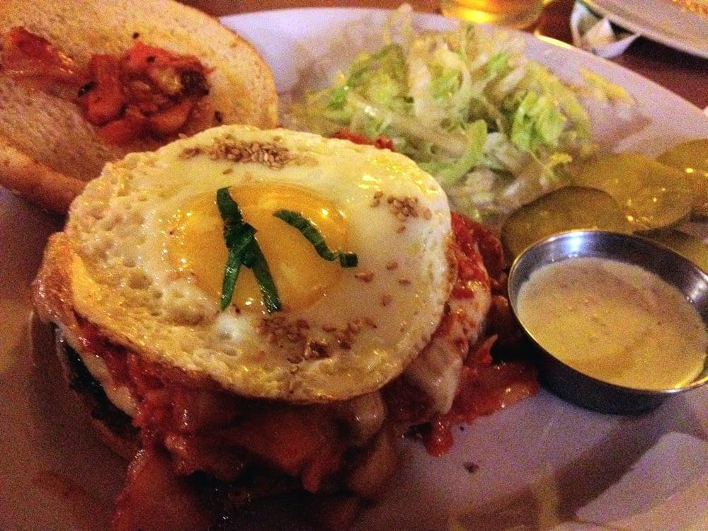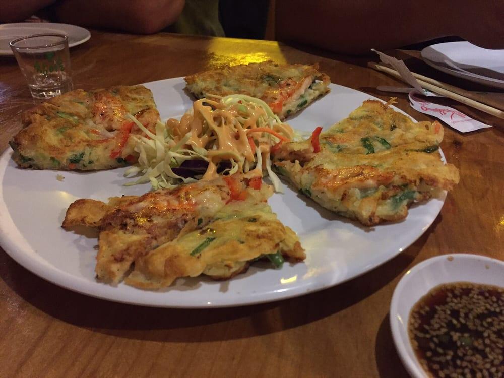 Korean inspired fusion dishes such as soy garlic/sweet & spicy chicken wings, bulgogi/pork/chicken tacos, shrimp/bulgogi poboy sandwiches, specialty fries topped with meat, cheese, and special sauce. K-Pop Burger: fried kimchi, sunnyside egg, cheese, beef patty on a toasted sesame seed bun.Traditional korean bar food include seafood pancake, fishcake soup, squid stir-fry, bulgogi/spicy pork/chicken stir-fry, sweet & spicy rice cake with veggies. Beverages include Beer, Soju, Raspberry wine, Makgeolli, Baeksaeju, and Cocktail soju.